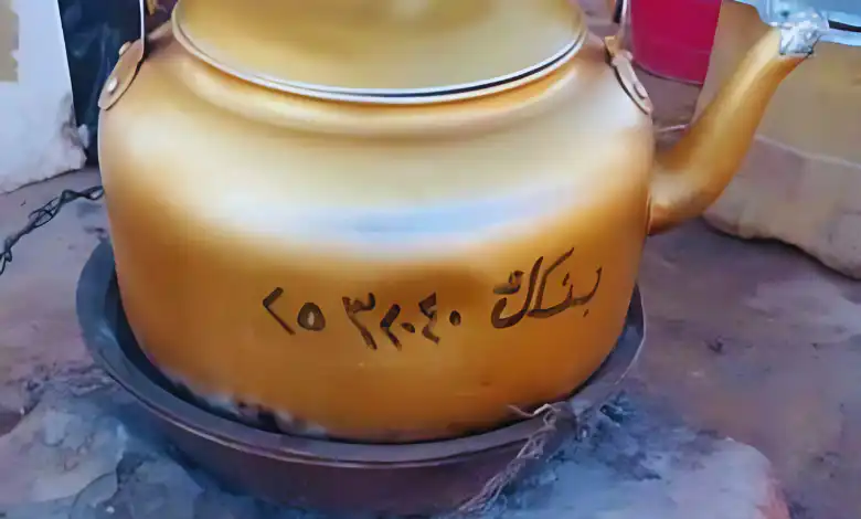 انباء السودان | تداول رواد مواقع التواصل الاجتماعي صورة احد بائعئ الشاي بمدينة بورتسودان يضع رقم حساب بنكك على كفتيرة الشاي والقهوه