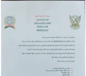 و جاء ذلك عبر رد من قائد ثاني التمرد عبدالرحيم دقلو بخطاب رسمي على أسرة النقيب سفيان محمد زين بريمة بتاريخ 25 ديسمبر 2024 مستفسرة عنه