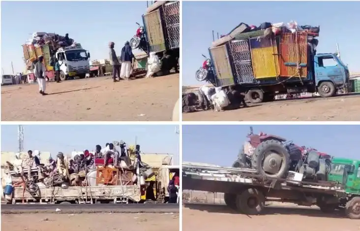 أظهرت الصور تحرك عربات وشاحنات كبيرة محملة بالمنهوبات في طريقها إلى جبل أولياء تمهيداً لمغادرة ولاية الخرطوم نحو دارفور.