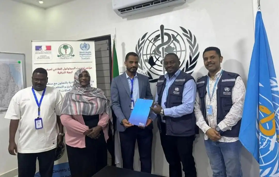 عقدت وزارة الصحة الإتحادية ورشة تحديث بروتوكول التعامل مع مرض الإيبولا، بالتعاون مع منظمة الصحة العالمية بغرض الإعلان عن تفاصيل البروتوكول الجديد وتدريب العاملين في مجال الرعاية الصحية.