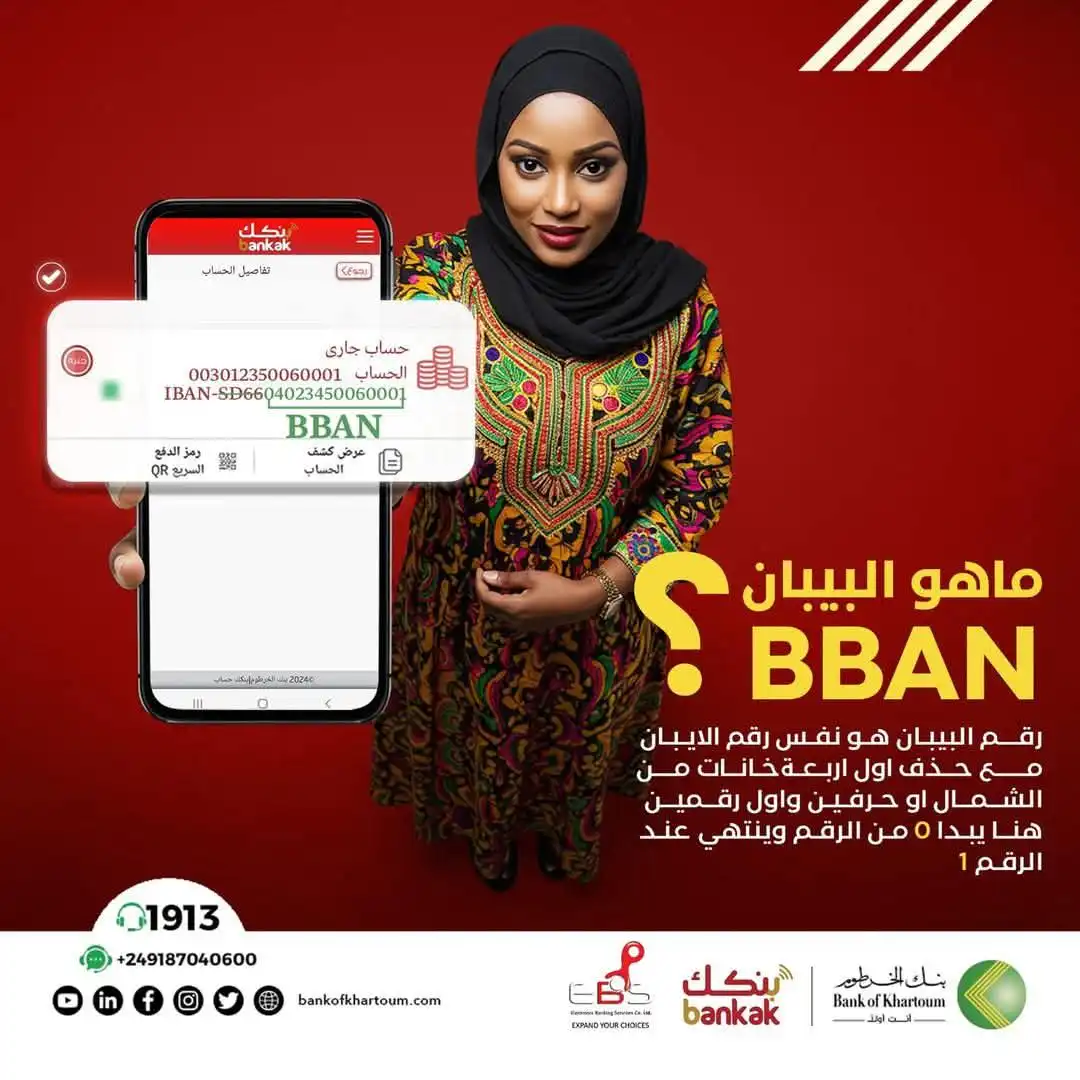 في خطوة تهدف لتسهيل العمليات المصرفية المحلية، أعلن بنك الخرطوم عن استخدام رقم “البيبان” #BBAN الذي يعد بديلاً محليًا لرقم الآيبان (IBAN) في التحويلات المصرفية. ويعد رقم “البيبان” مشابهًا لرقم الآيبان، لكن مع تعديل بسيط يتمثل في حذف أول أربع خانات من الشمال، مثل أول حرفين وأول رقمين من رقم الآيبان.