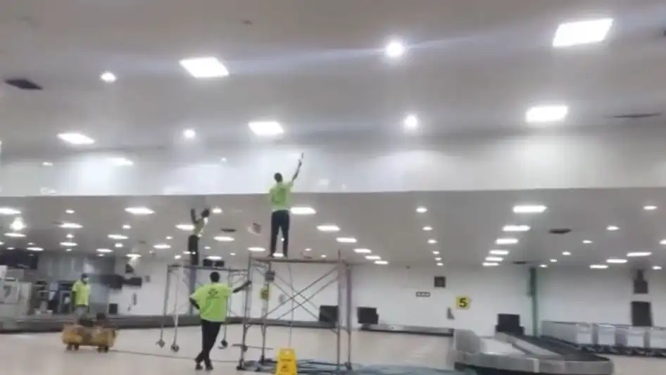 انتشر مؤخرًا على منصات التواصل الاجتماعي في السودان مقطع فيديو يُظهر صالة الوصول بمطار الخرطوم وسط عمليات صيانة قائمة. وأثار الفيديو تفاعلاً واسعًا بين المستخدمين الذين اعتقدوا أن المقطع يوثق أعمال صيانة حديثة في المطار.