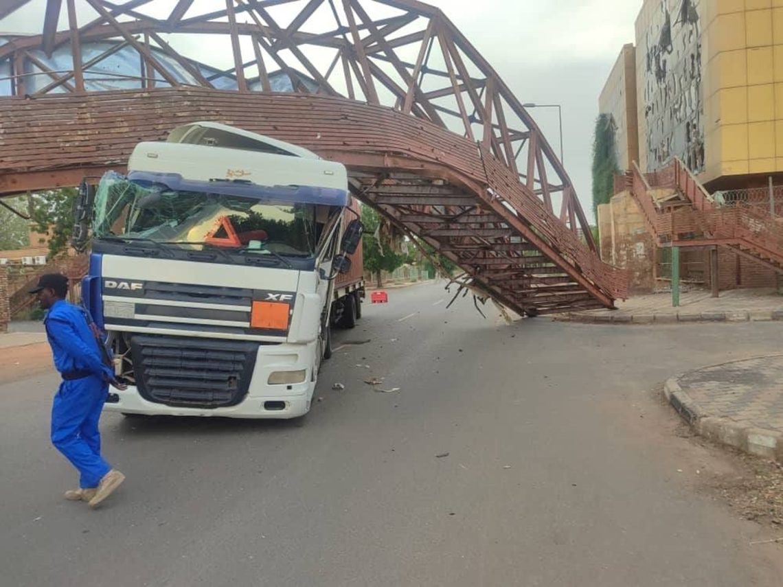 الاصطدام العنيف تسبب في انهيار كامل للهيكل المعدني والدعامات الحاملة للجسر، ما أدى إلى توقف الحركة المرورية في أحد أكثر شوارع الخرطوم حيوية.