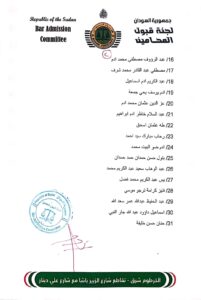 أصدرت لجنة قبول المحامين بجمهورية السودان قرارًا بإيقاف تراخيص عدد من المحامين، وذلك على خلفية ثبوت انضمامهم إلى مليشيا الدعم السريع المصنفة كجماعة متمردة.