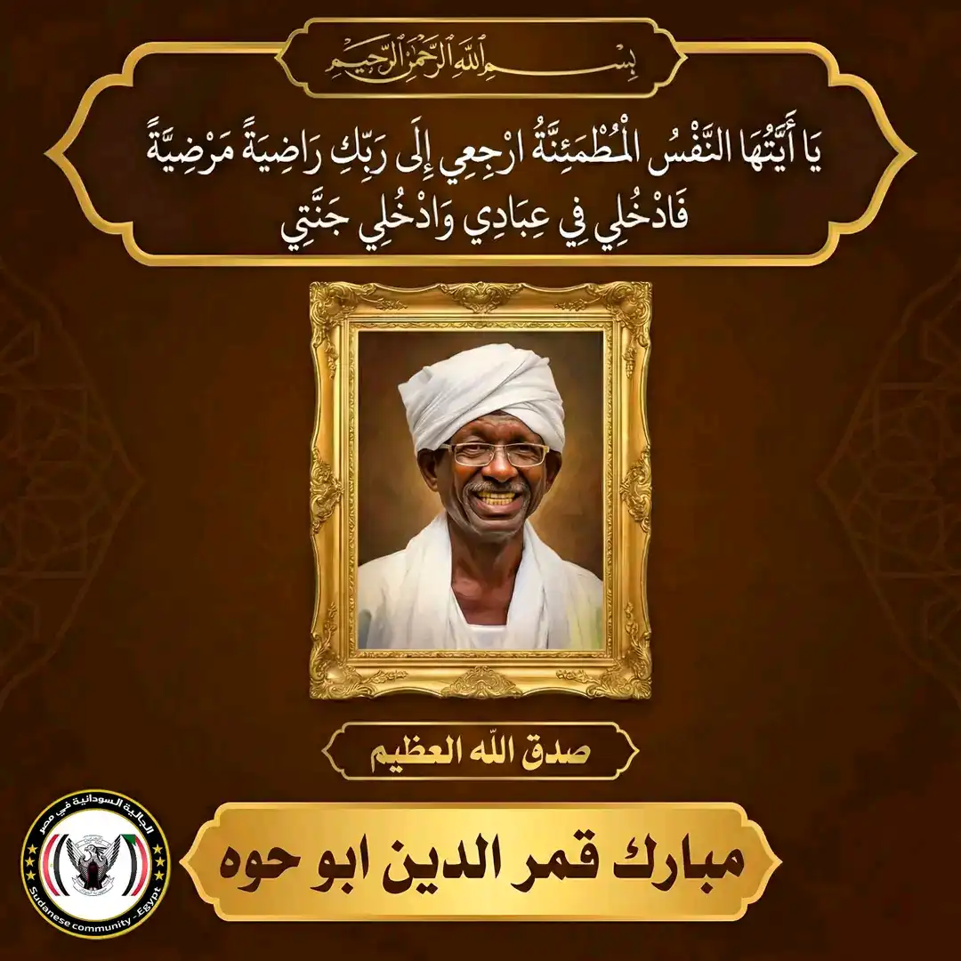 نعت الجالية السودانية بمصر المواطن السوداني مبارك قمرالدين (67 عاما) الذي توفى داخل قسم شرطة الشروق بالقاهرة الجديدة .