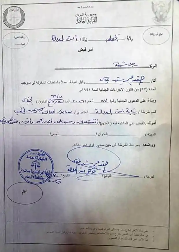 أمر قبض يهز المشهد في الخرطوم